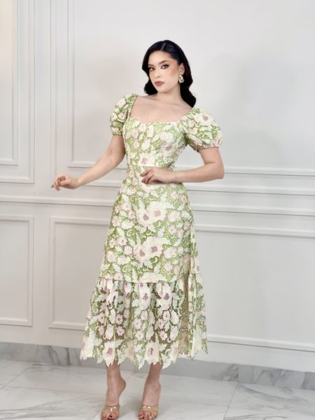 VESTIDO MIDI VERDE CON FLORES