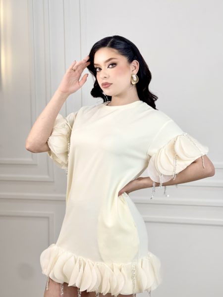 VESTIDO MINI PEGADO AMARILLO CON PERLAS