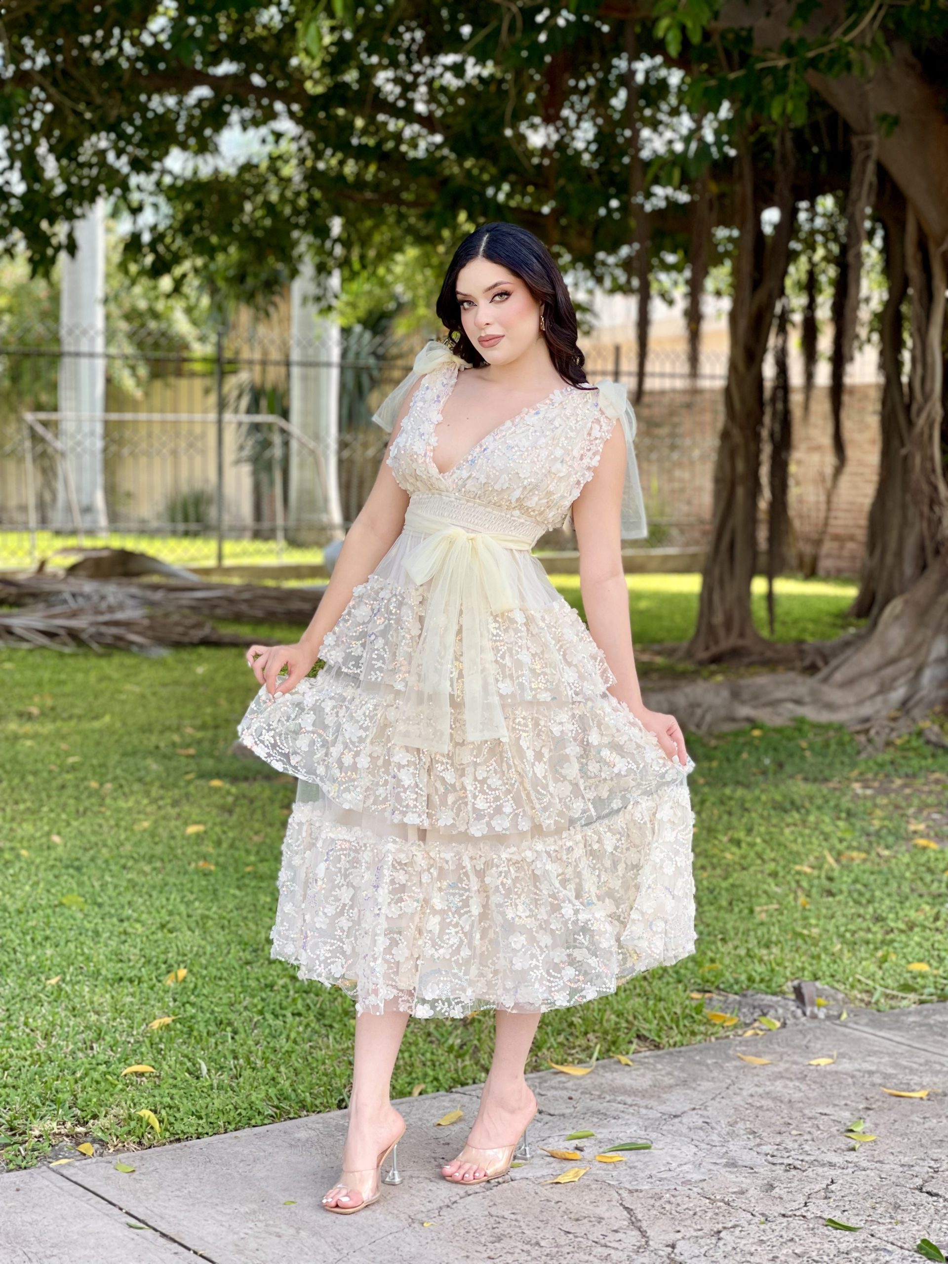 Sé el primero en valorar “MAXI VESTIDO BEIGE MARIPOSAS BRILLOS”