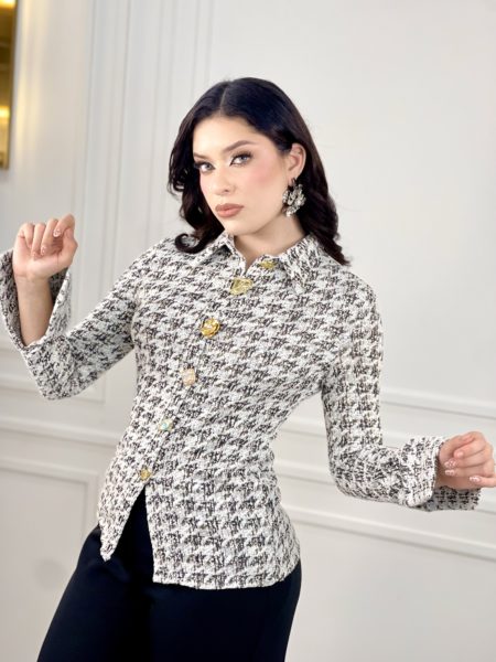 CAMISA NEGRA/BLANCO BOTONES